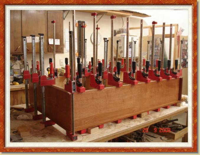 Cabinets are individually glued and clamped ![]() |