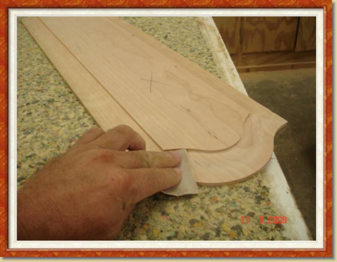 A top rail for a cathedral door is cut with a band saw ![]() |